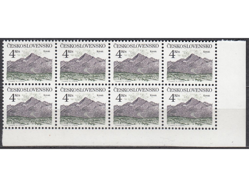 Poštovní známka 1991, 4Kčs Kriváň, rohový 8blok s vynechaným perforačním otvorem, Nr.2983, **