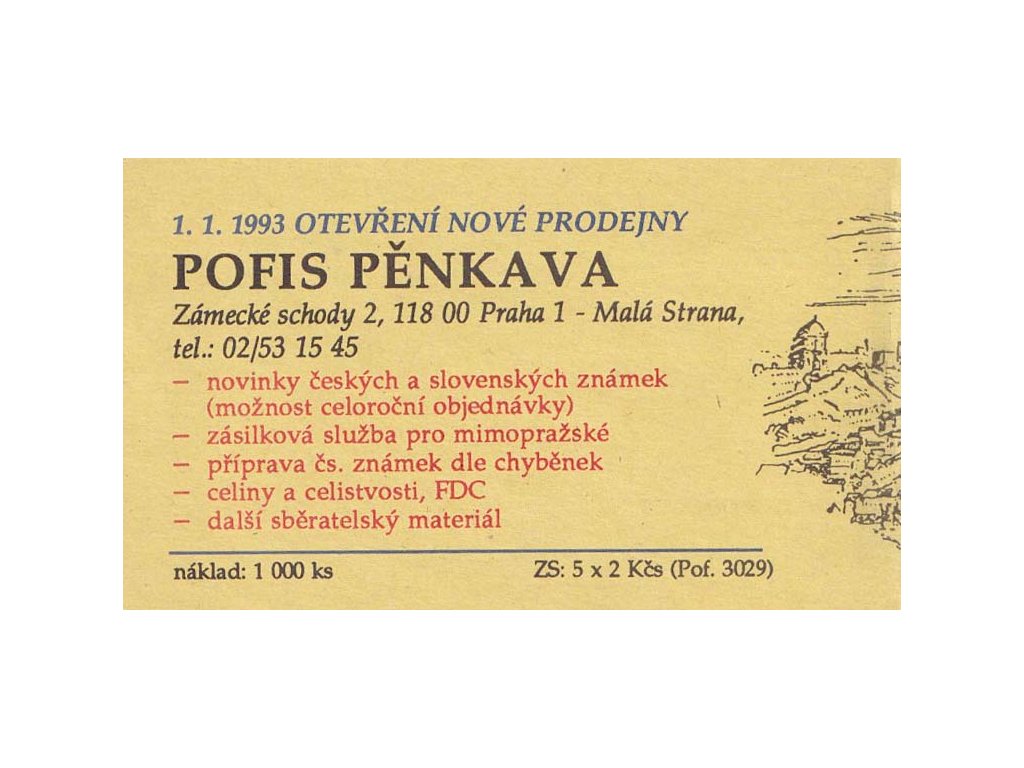Známkový sešitek, Známkový sešitek, 1992, Pofis, Pěnkava, ** , 5x 2 Kčs Den známky