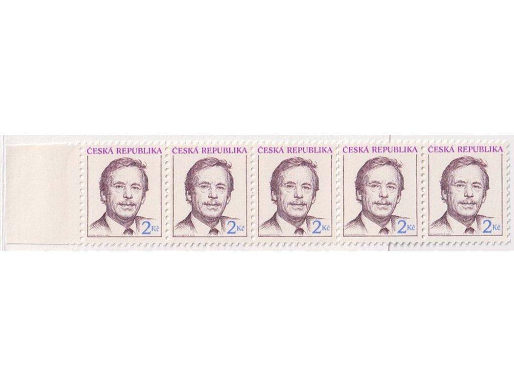 Desková vada, 1993, 2 Kč Havel, DV - fialový bod nad obočím, Nr.3, ** , ZP 94/1, známkový sešitek ZS 3