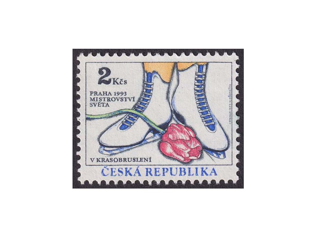 1993, 3 Kč MS v krasobruslení, DV - modrý bod nad "N", Nr.2, **