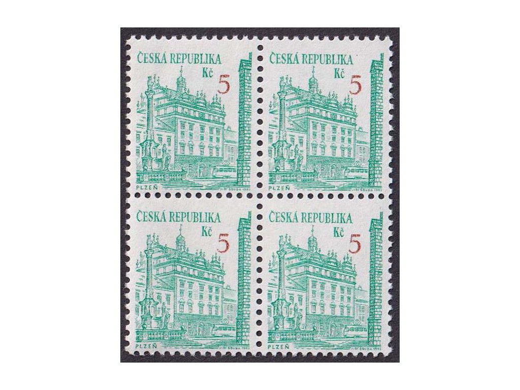 Poštovní známka, 1993, 5 Kč Architektura, VV - posun hodnotové číslice, Nr.VV15, ** , 4blok