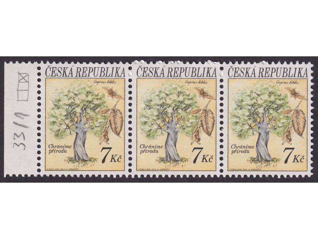 Poštovní známka, 1993, 7 Kč Stromy, DV - výrazná hnědá skvrna v koruně stromu, Nr.24, ** , ZP 33/1
