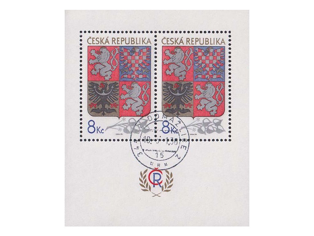 Poštovní známka, 1993, aršík 8Kč Znak ČR, Nr.A10, razítkované