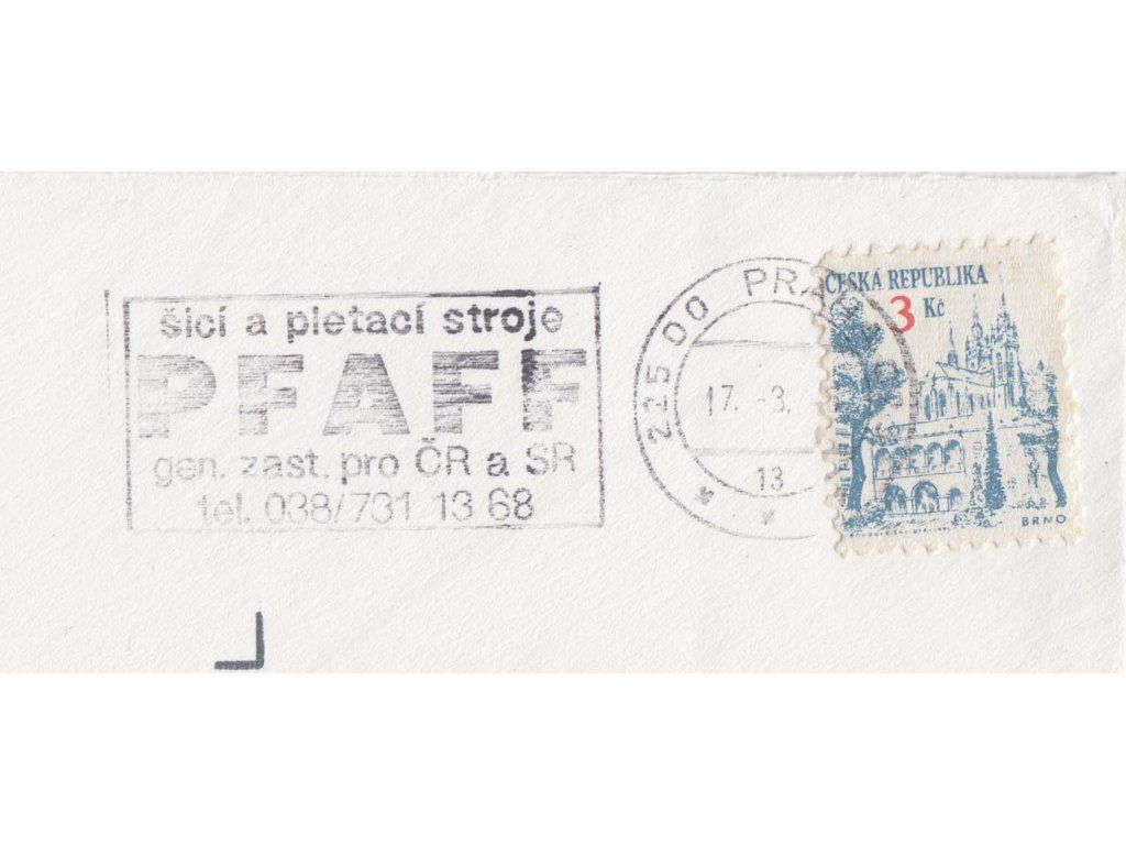 1994, 3 Kč Brno, falzum ke škodě pošty na dopise, DR Praha, zasl. v místě