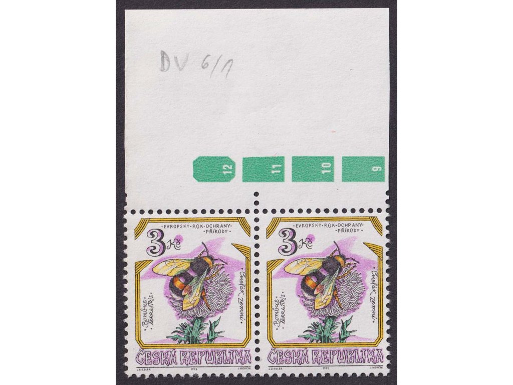 Poštovní známka, 1995, 3 Kč Ohrožený hmyz, DV - vodorovná ryska přes PH zaoblený roh, Nr.73, ** , ZP 6/1