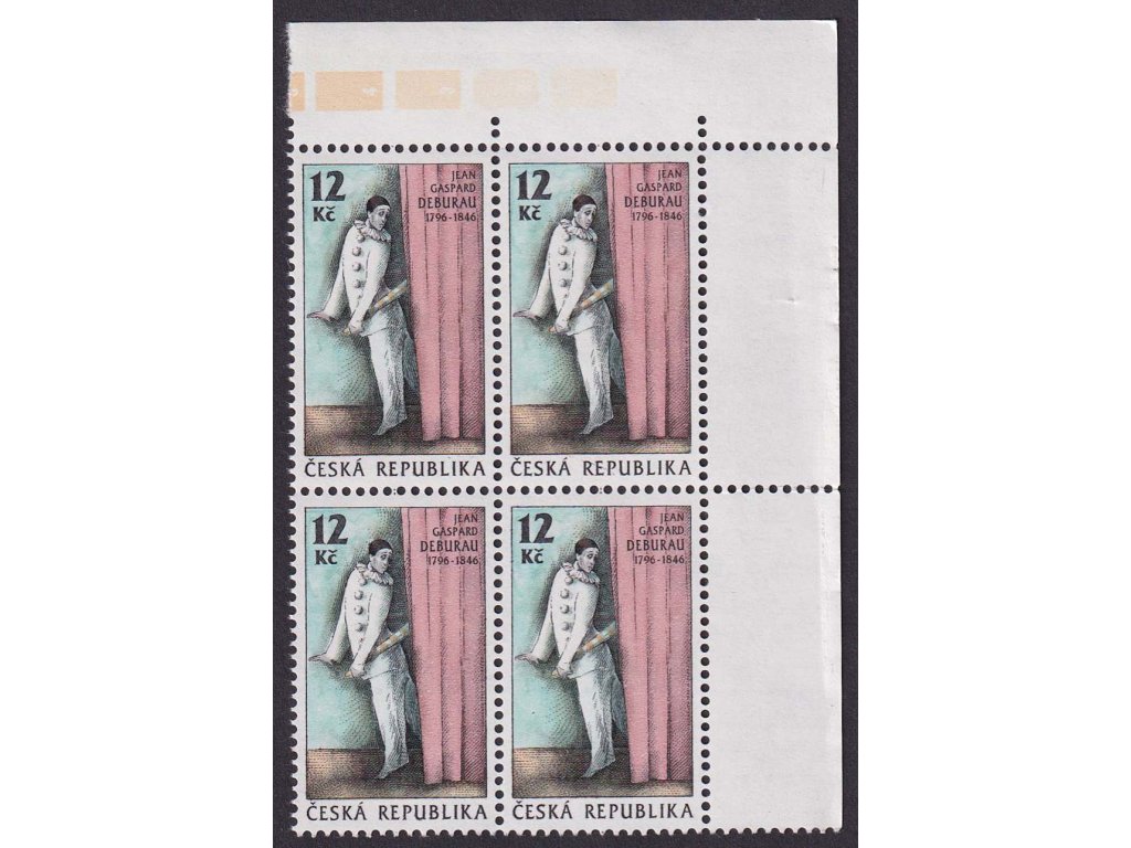 Poštovní známka, 1996, 12 Kč Deburau, DV - vodorovná ryska v pravém záhybu opony cca uprostřed, Nr.DV 115, ** , ZP 19/2