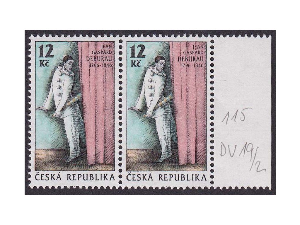 Poštovní známka, 1996, 12 Kč J. G. Deburau, DV - ryska v pravém záhybu opony, Nr.115, ** , ZP 19/2