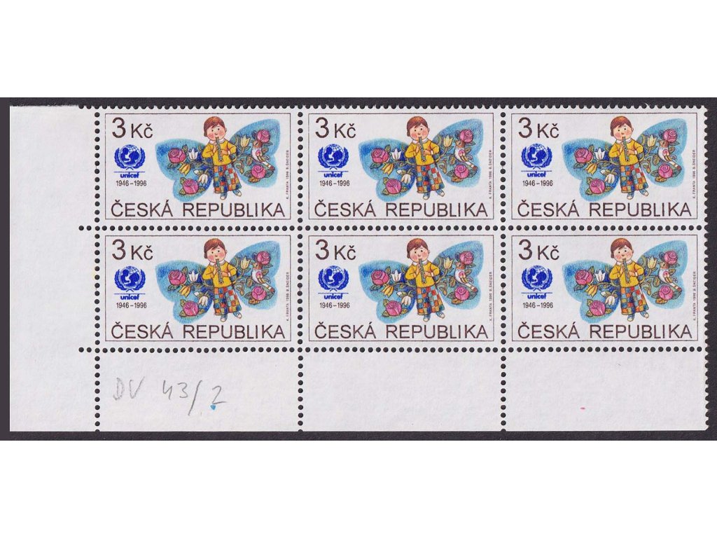 Poštovní známka, 1996, 3 Kč UNICEF, DV - hnědá čára z boty k písmenu "B", Nr.121, ** , ZP 43/2