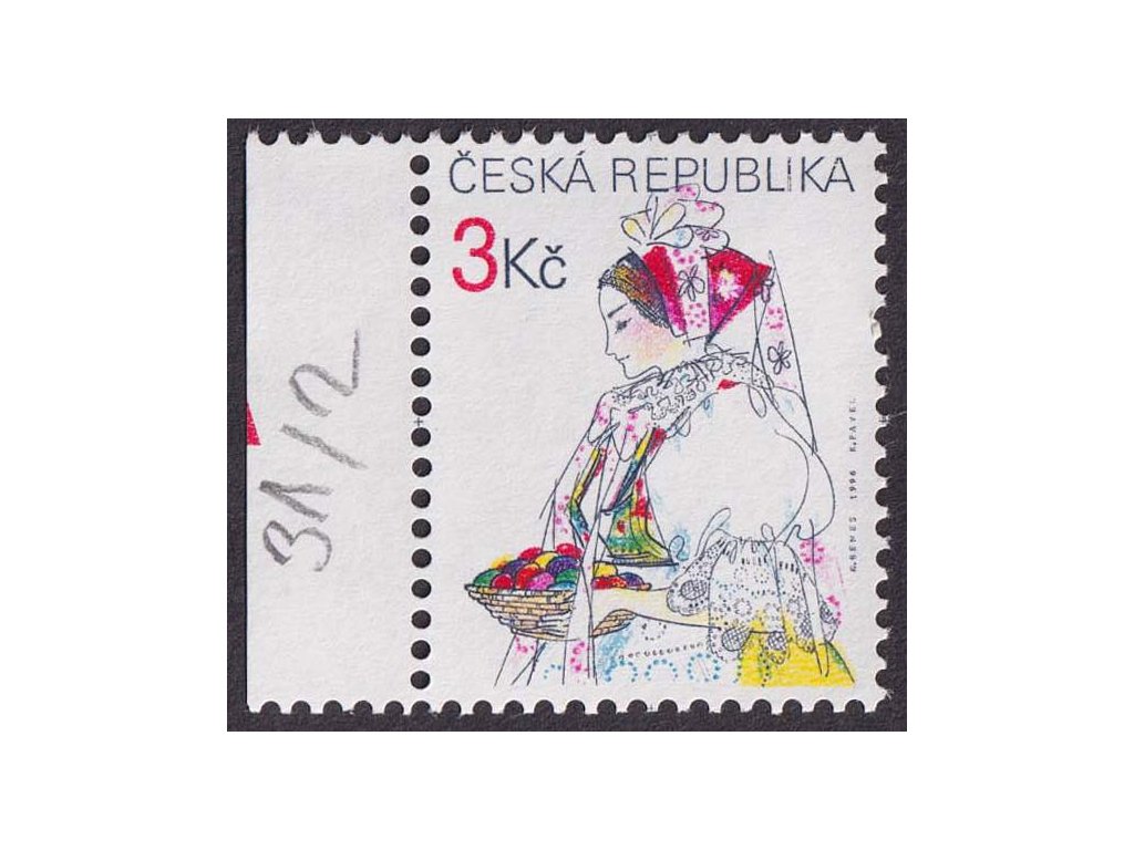 Poštovní známka, 1996, 3 Kč Velikonoce, DV - dvě svislé rysky ve čtvrtém modrém kruhu, Nr.103, ** , ZP 31/2