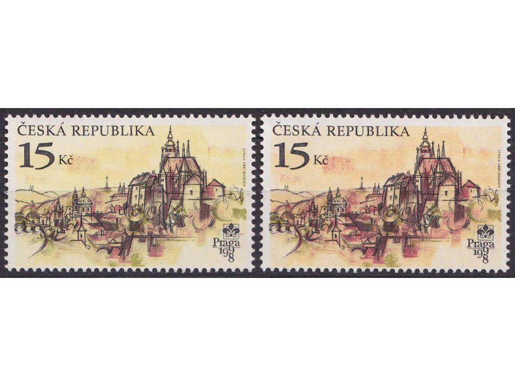 Poštovní známka, 1997, 15 Kč Praha stověžatá, 2 kusy - odstíny žluté, Nr.156, **