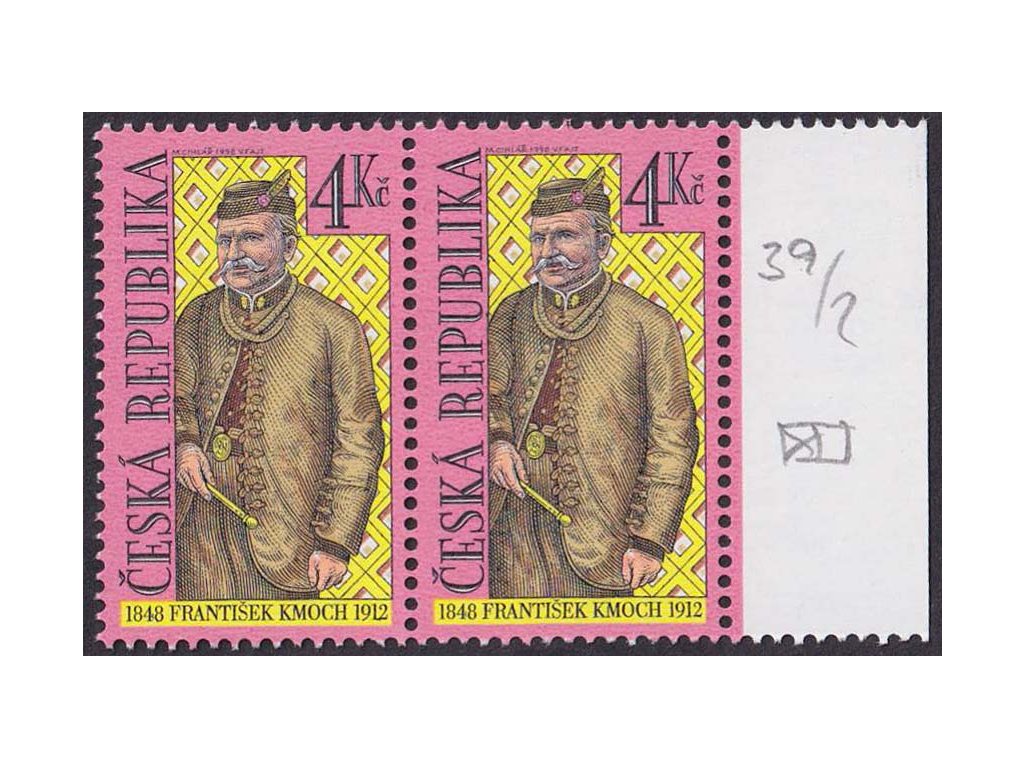 Poštovní známka, 1998, 4 Kč Osobnosti, DV - dlouhá vodorovná ryska ve žlutém poli pod "4" (4 Kč), Nr.185, ** , ZP 39/2