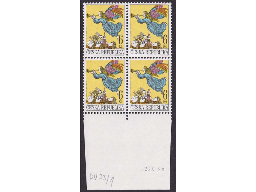 Poštovní známka, 1998, 6 Kč Vánoce, DV - šikmá ryska přes "R" (REPUBLIKA), Nr.199, ** , ZP 33/1