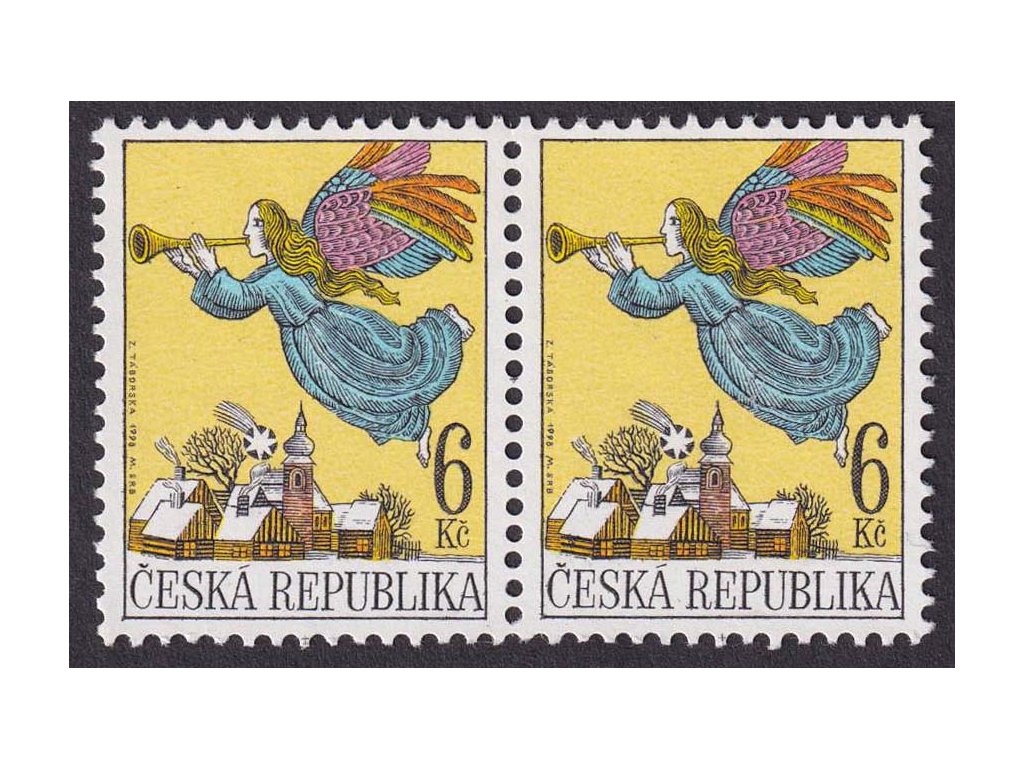 Poštovní známka, 1998, 6 Kč Vánoce, DV - šikmá ryska přes "R" (REPUBLIKA), Nr.199, ** , ZP 33/1
