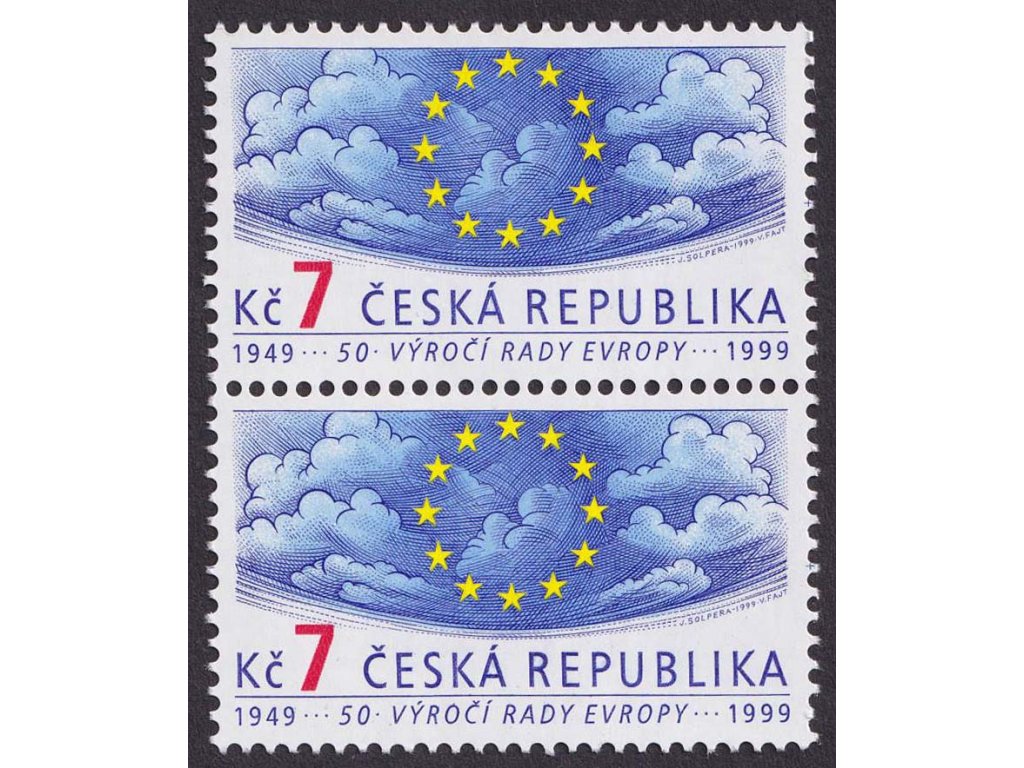 Poštovní známka, 1999, 7 Kč Rada Evropy, DV - svislá ryska za "1949", Nr.214, ** , ZP 37/1
