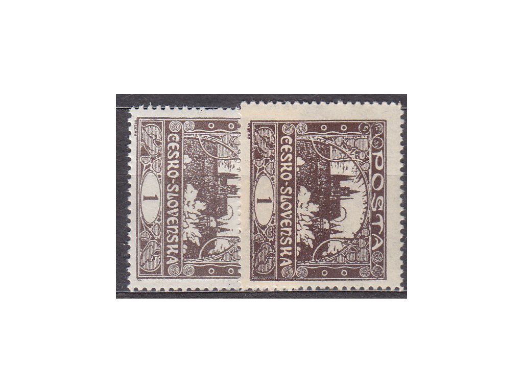 Známka Hradčany 1h hnědá, Řz.13 3/4, 2 ks - odstíny hnědé, Nr.1C, **, ilustrační foto