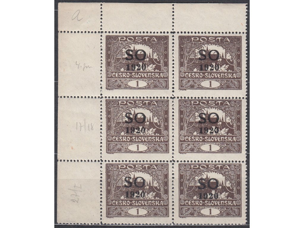 Poštovní známka 1h hnědá, Řz.13 3/4, rohový 6blok, Nr.SO1B, **