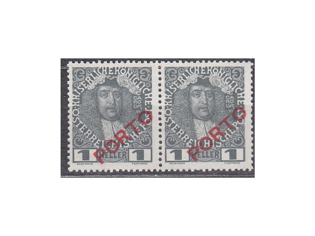 Rakouská známka 1h PORTO, 2páska s ST II+I, ** , zn. platná v ČSR