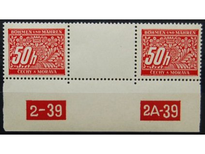 Doplatní známka 1K modrá, meziarší s DČ 2-39, Nr.DL9, **