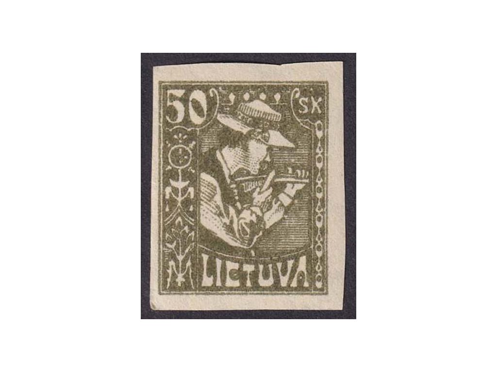 Poštovní známka, Lietuva, 1921, 50 Sk Zemědělec, nezoubkovaná, MiNr.92U, * po nálepce