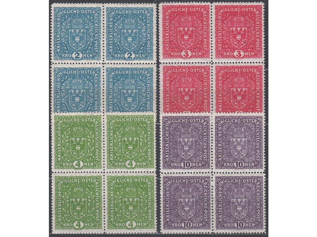 Poštovní známky 2-10K Znak, 4bloky, žilkovaný papír, **, zn. platné v ČSR, mimořádná nabídka