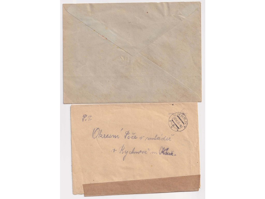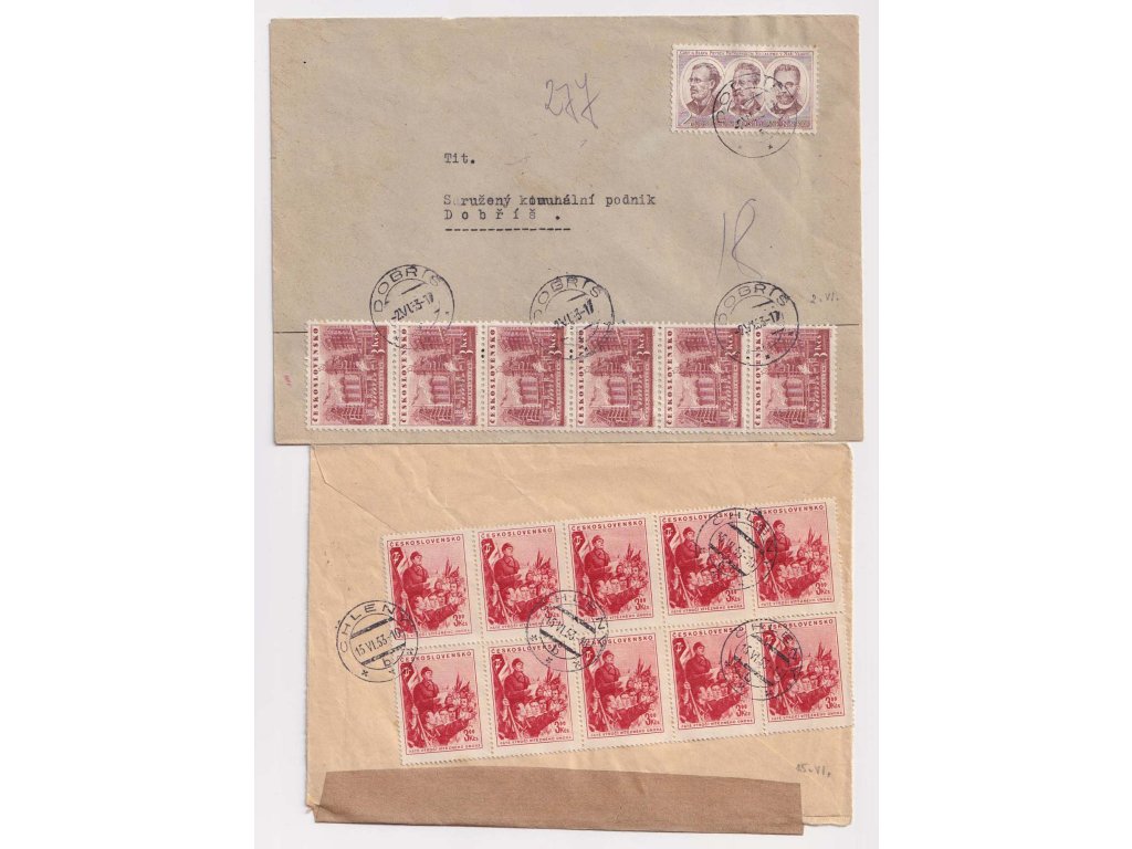Měnová reforma, 2.6.1953, 2 ks celistvostí, DR Chleny 15.6.1953 resp. Dobříš 2.6.1953, různé frankatury a jakost