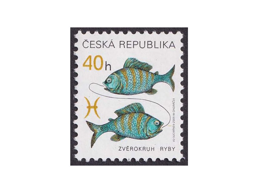 Poštovní známka, 2001, 0.40 Kč Znamení zvěrokruhu, DV - okrová čára před tlamou ryby, Nr.282, ** , ZP 10/1