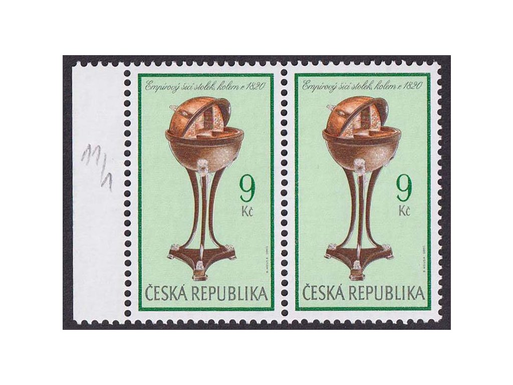Poštovní známka, 2002, 9 Kč Slohový nábytek, DV - vodorovná ryska přes dolní část "SK" (ČESKÁ), Nr.340, ** , ZP 11/1