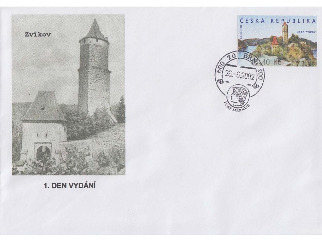 2002, FDC Zvíkov, razítko Brno 26.6., automatová známka, nevydaná