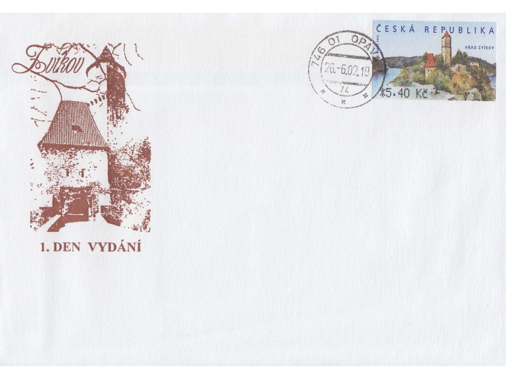 2002, FDC Zvíkov, razítko Opava 26.6., automatová známka, nevydaná