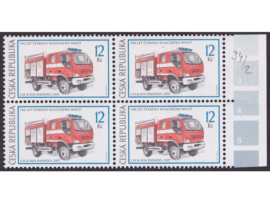Poštovní známka, 2003, 12 Kč Hasičská technika, DV - čtyři modré body vlevo u cisterny, Nr.377, ** , ZP 34/2