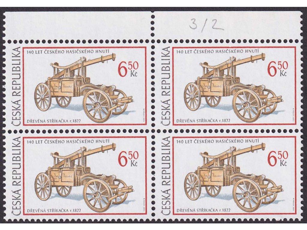 2003, 6.50 Kč Hasičská technika, DV - vykousnutý rámeček, Nr.375, **