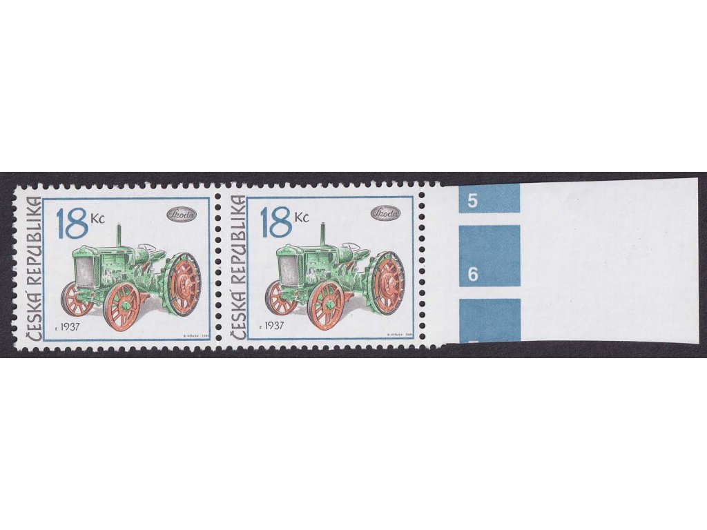 Poštovní známka, 2005, 18 Kč Traktor, DV - svislá ryska mezi levými koly, Nr.449, ** , ZP 15/2