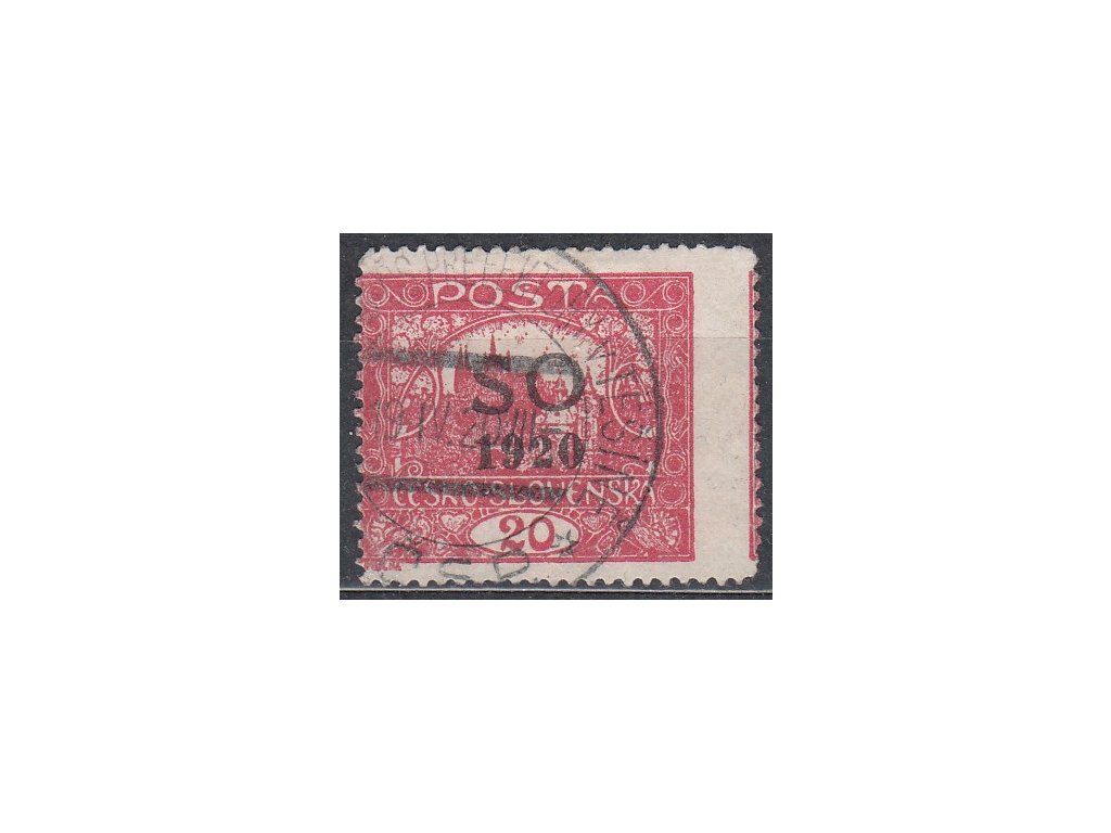 Poštovní známka 20h červená, Řz.13 3/4, posun perforace, Nr.7B, razítkované
