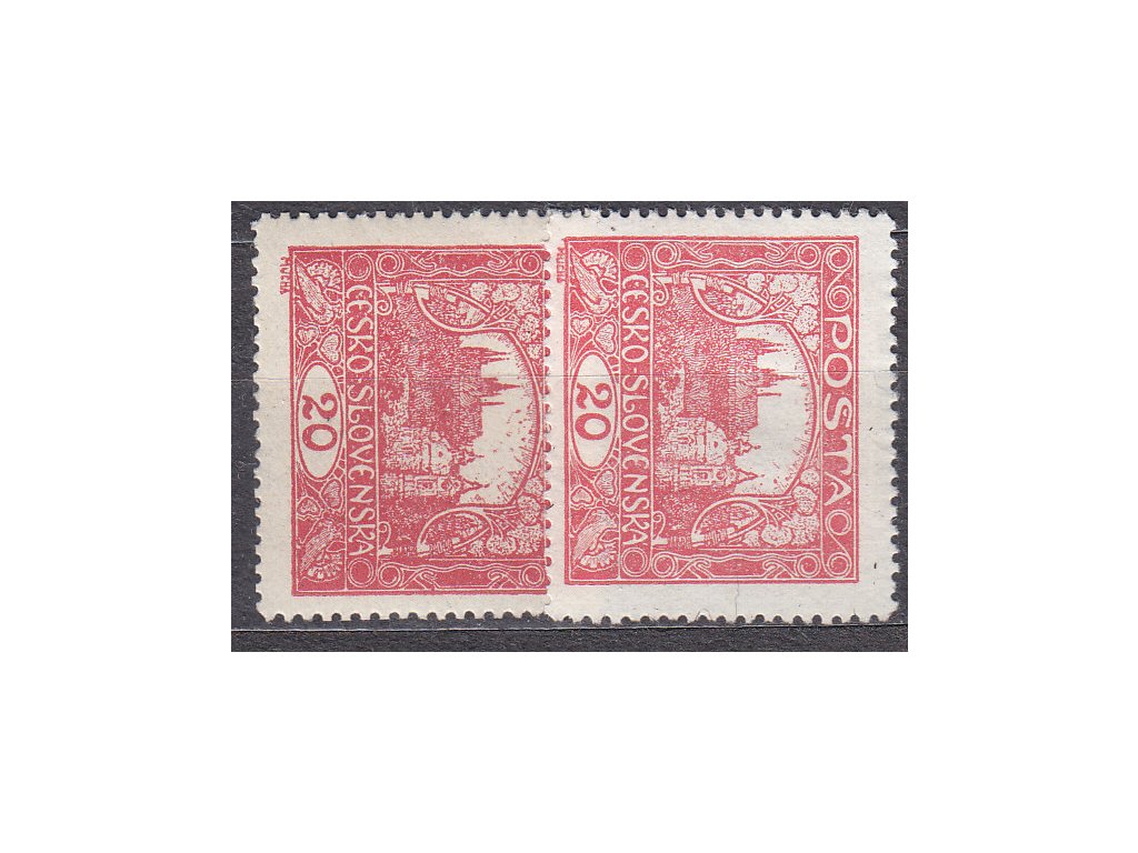 Známka Hradčany 20h červená a světle červená (růžová), Řz.13 3/4, Nr.9C, * po nálepce, ilustrační foto