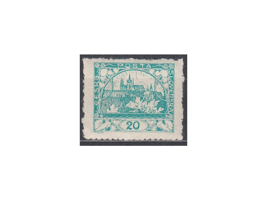 Známka Hradčany 20h modrozelená, průsek, Nr.8, * po nálepce