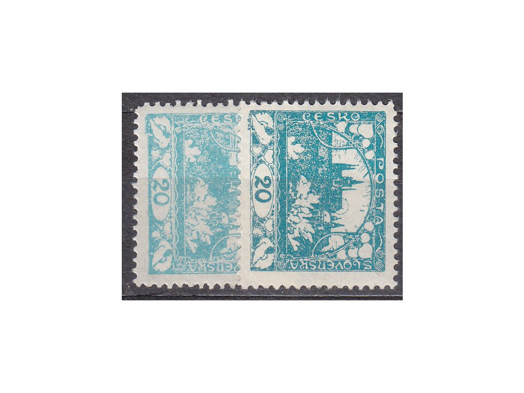 Známka Hradčany 20h modrozelená, Řz.11 1/2, 2 ks - odstíny barev, Nr.8D, **, ilustrační foto