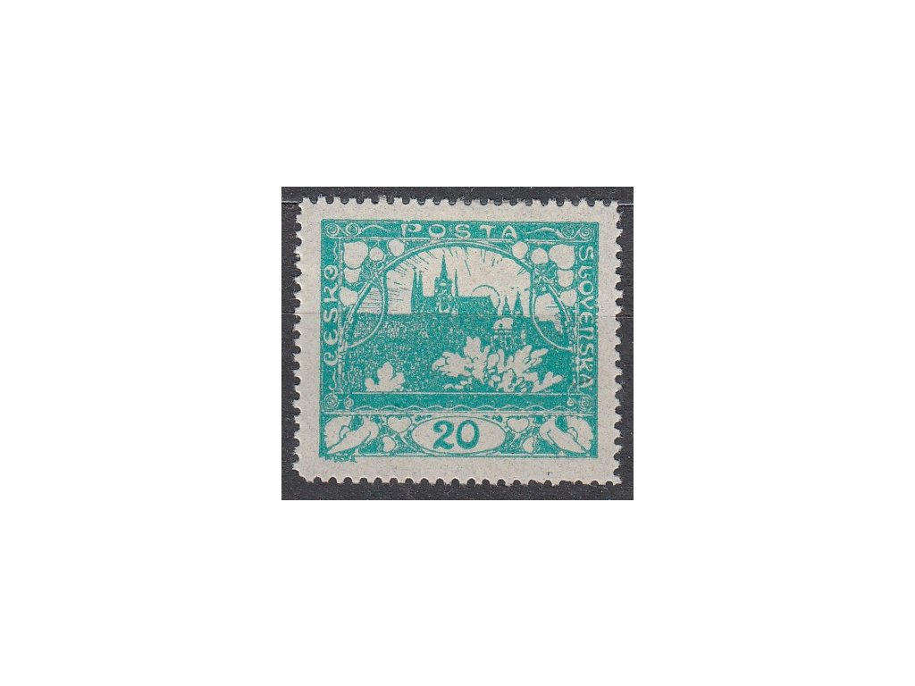 Známka Hradčany 20h modrozelená, Řz.13 3/4, Nr.8C, * po nálepce