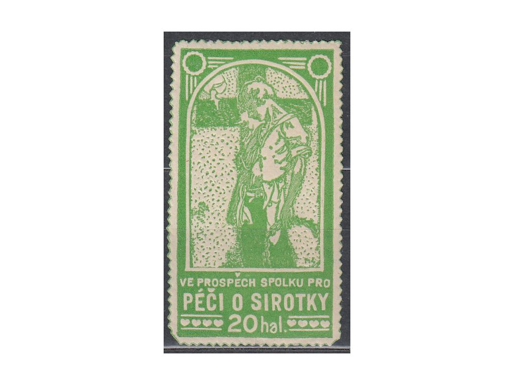 20h Mucha, Péče o sirotky v barvě světle zelené, cca 1920, **