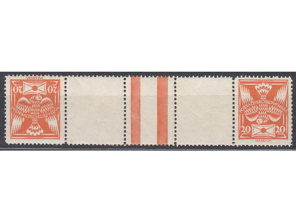 Poštovní známka 20h oranžová, široká protichůdná dvojice, Nr.148TBb, **, luxusní kus
