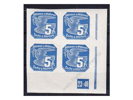 1939, 20h zelená, rohový 4blok s čarou na okraji, Nr.NV7, **, zahnědlé okraje na lepu