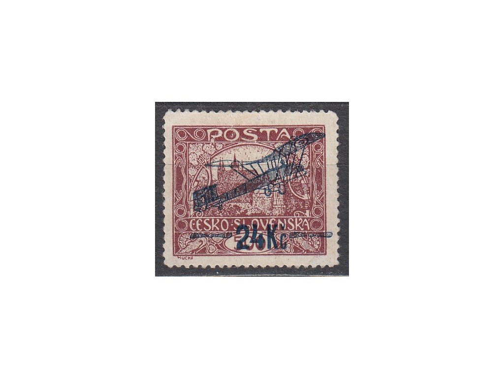 Letecká známka 24Kč/500h hnědá, Řz.13 3/4, zk. Gilbert, Mrňák, Beneš, Nr.L2A, **