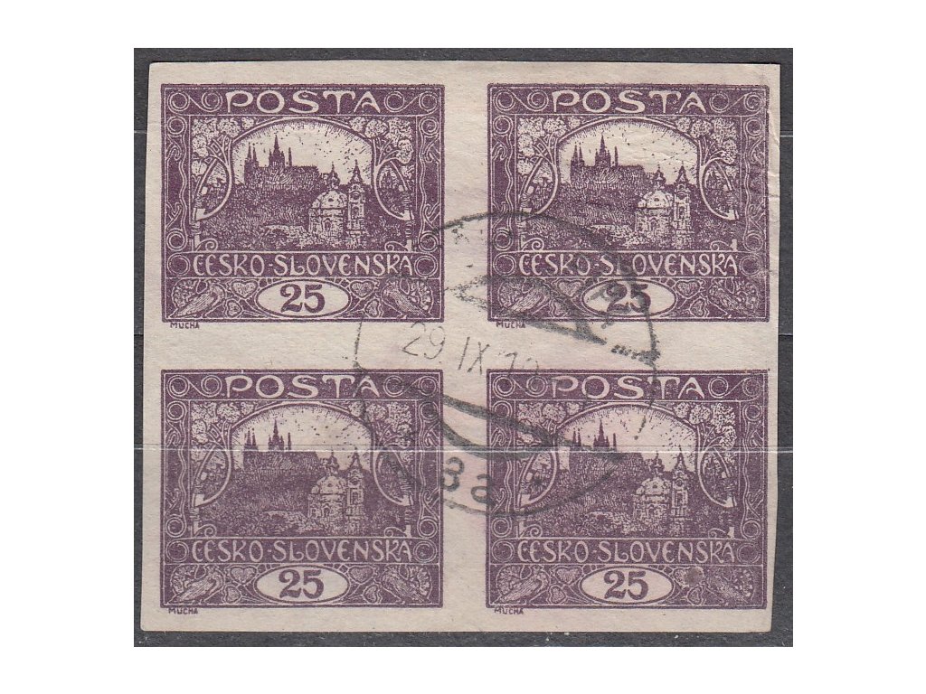Známka Hradčany 25h fialová, 4blok s ST spirály, Nr.11STs, razítkované, dv papíru