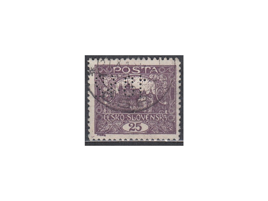 Známka Hradčany 25h fialová, Řz.11 1/2, příčkový typ, perfin, Nr.11D, razítkované