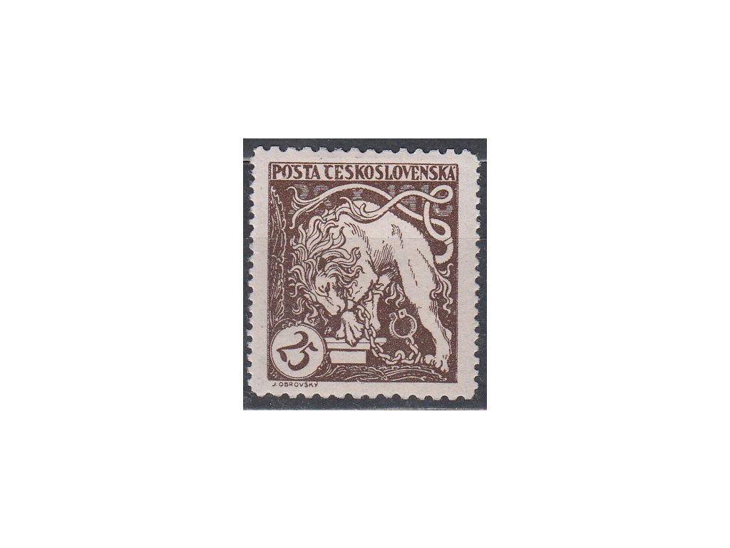 Poštovní známka 25h hnědá, Řz.10 1/2:13 3/4, Nr.28D, * po nálepce