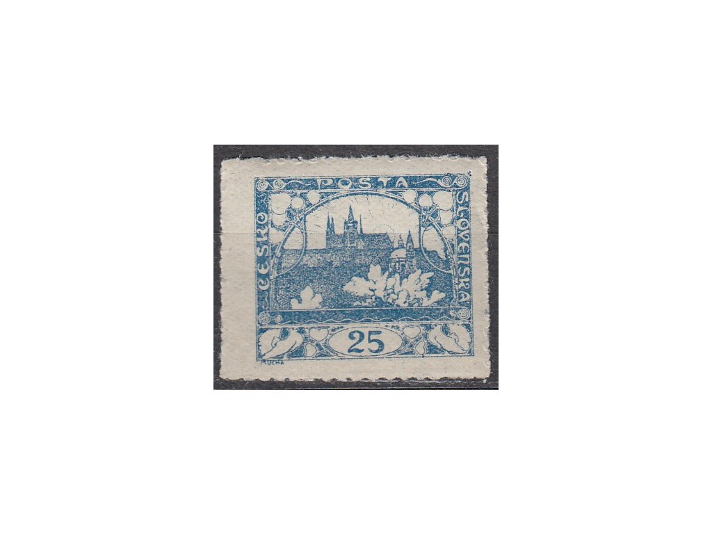 Známka Hradčany 25h modrá, průsek, Nr.10, * po nálepce