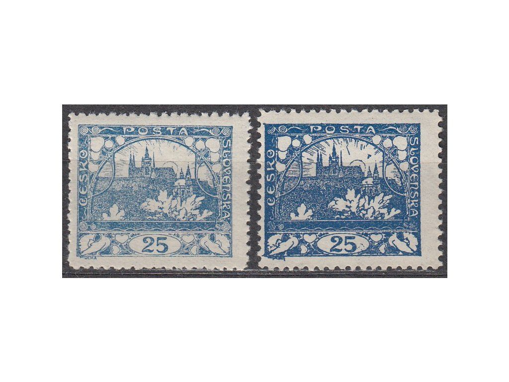 Známka Hradčany 25h modrá a světle modrá, Řz.11 1/2, Nr.10D,10Da, **