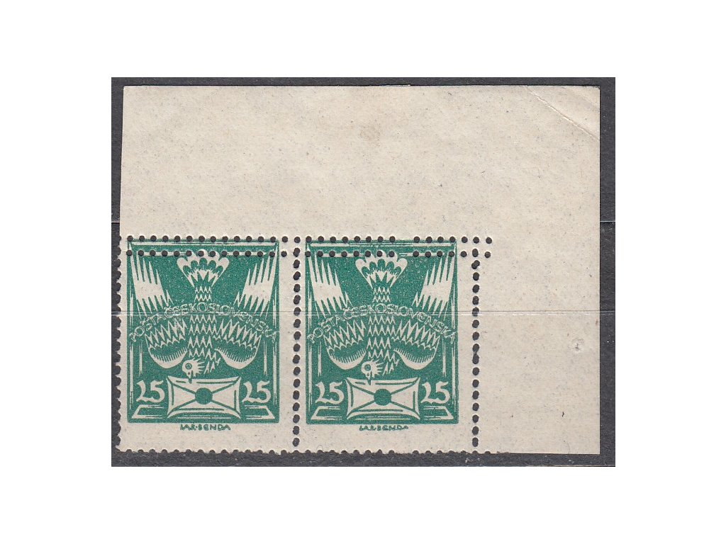 Poštovní známka 25h zelená, rohová 2páska s dvojitou perforací, Nr.149, **, nálepka na okraji
