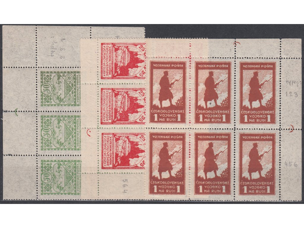 25Kop-1Rbl série, Řz.13 3/4, rohové 6bloky s typy I-VI, 2 ks zk.Gilbert, Nr.PP2-4B, **