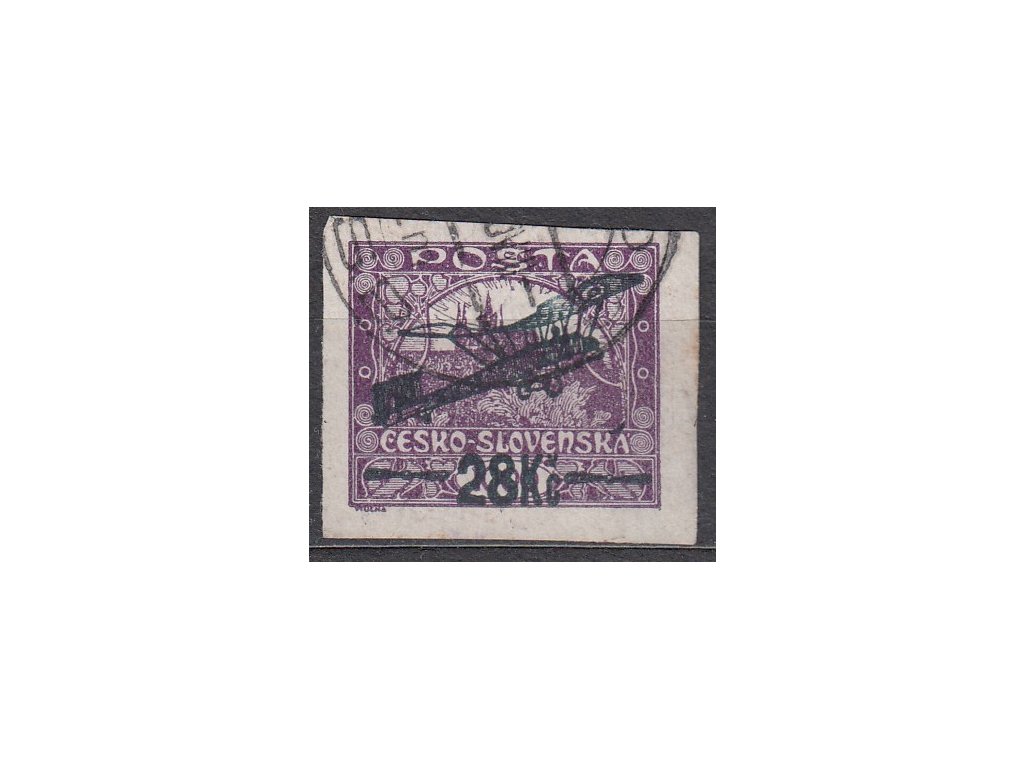 Letecká známka 28Kč/1000h fialová, nezoubkovaná, falzum přetisku, Nr.L3, razítkované