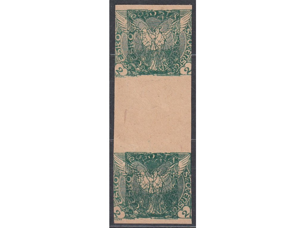 2h zelená, 2známkové meziarší (27mm), ZT na nahnědlém papíru bez lepu, dvojitý tisk, Nr.NV1, vzácné